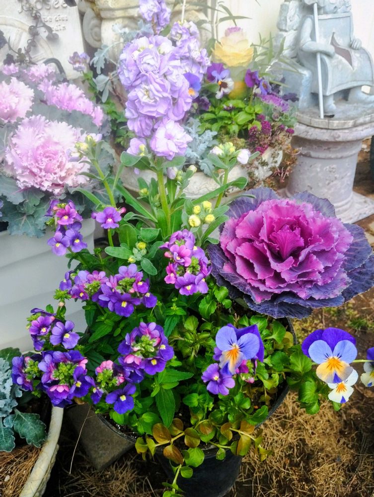 White Roseさんの庭,リナリア,葉牡丹の投稿画像