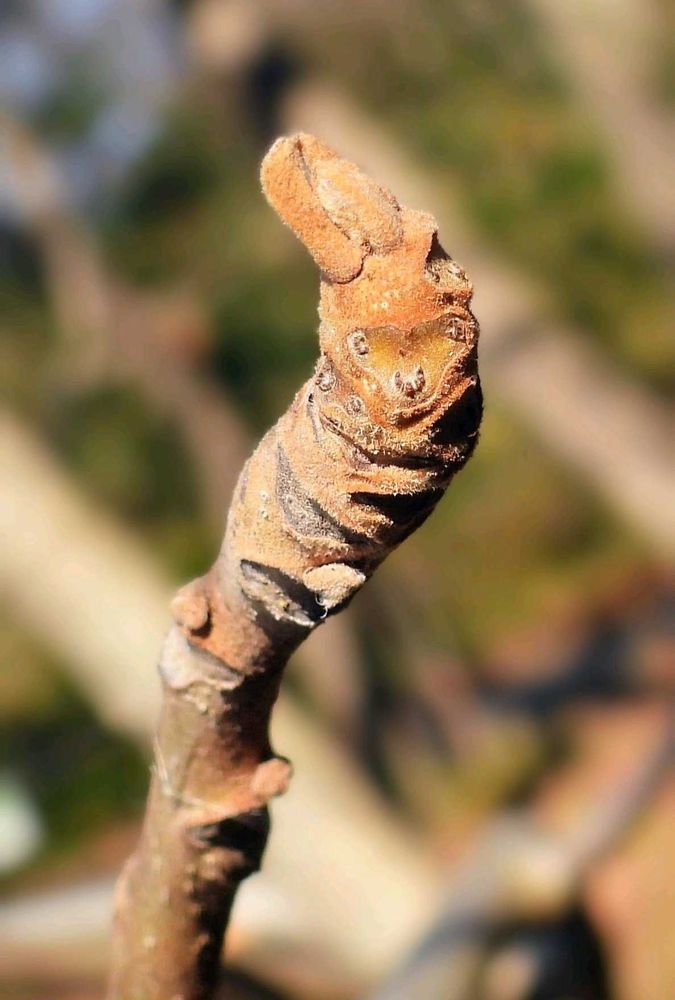 オニグルミの可愛い冬芽葉痕です、いろいろな顔の羊🐑さんですね🤎🌿
