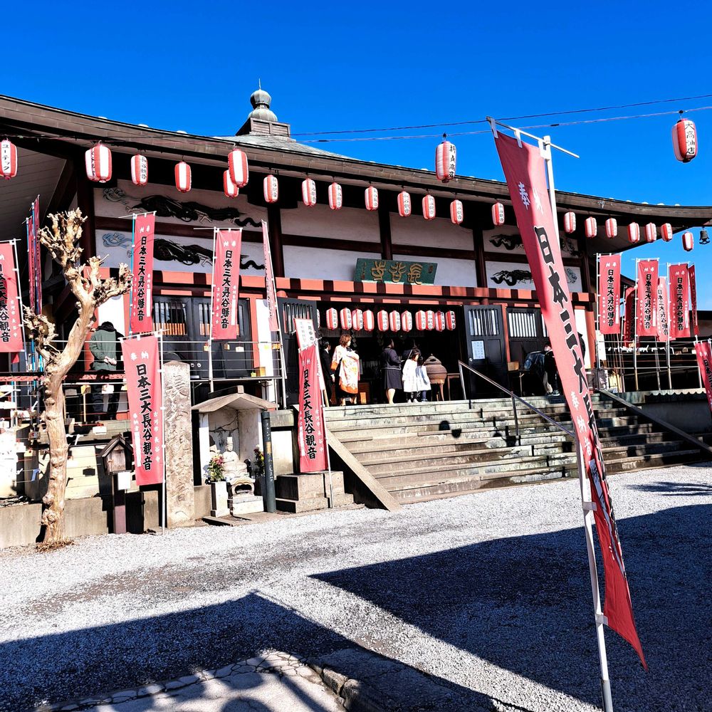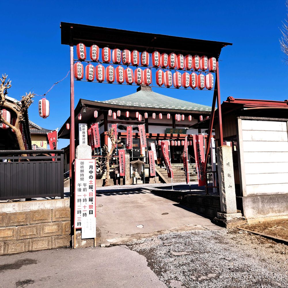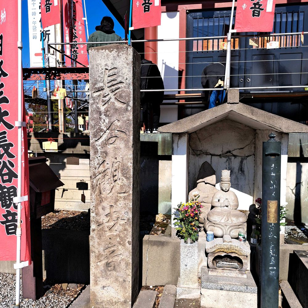 茨城県古河市の長谷寺に詣でてまいりました 渡良瀬川にかかる三国橋を渡ってすぐ右に入ると賑やかに赤と白の幟と提灯に彩られた境内がみえますのですぐわかります 以前フレンチブルドッグを飼っていたおりリンパ腫ができてしまい地元のクリニックのあまりの対応に思案していたところ古河市にあるK動物病院が腫瘍医療は上手であると雑誌にのってましたのですぐさまその医院に そしてそのブル以後何匹の犬と猫をみてもらったのやら その度にこの長谷寺の脇は通行させてもらいましたがちょっと道は狭いのが難点ではあります 気になってはいましたがやっと詣でることができました、よかった 何年か前に勇退なされたK先生… あなたは本当に動物に優しき目を向けた偉大な方であります どうぞ末長きに渡りお元気であられますように妻(ペットを飼っていた本人)共々願っております