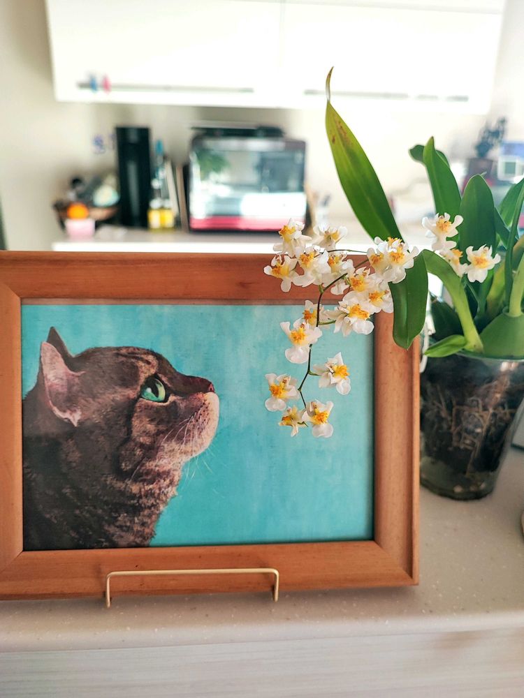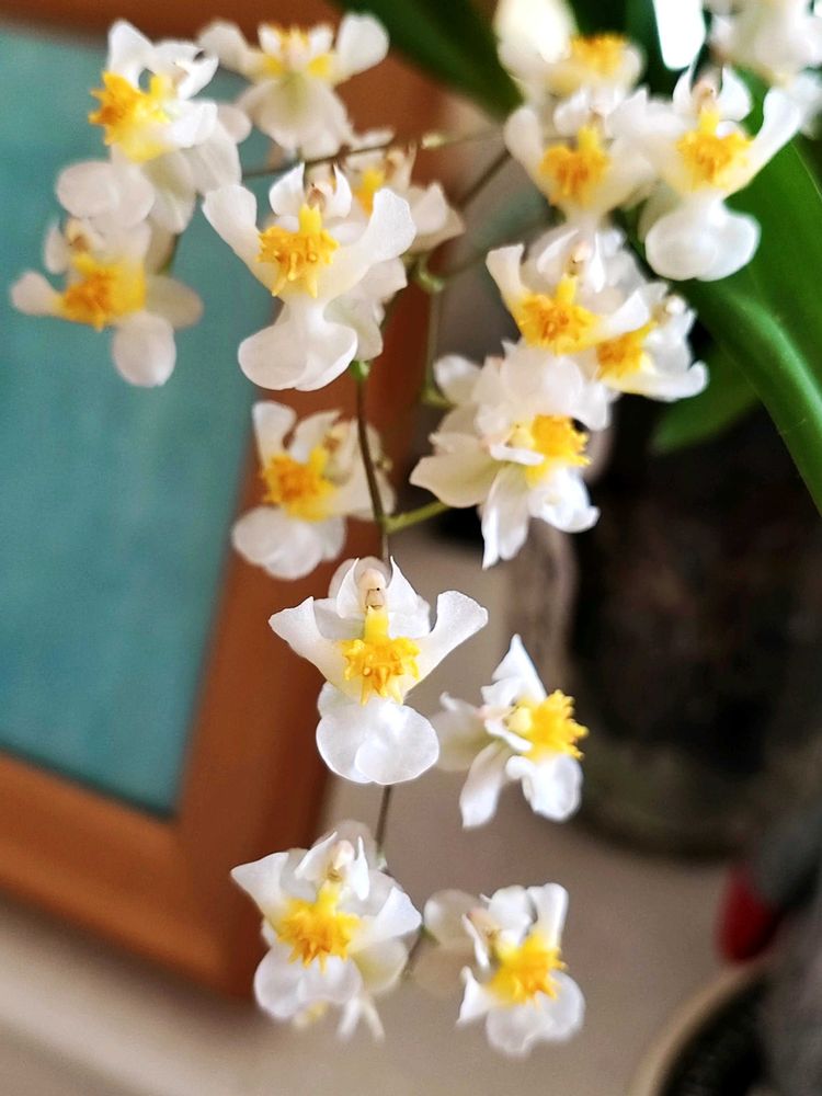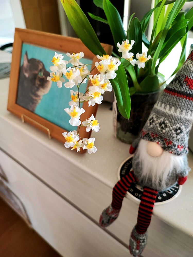 おはようございます。オンシジューム トゥインクルが満開になりました。オンシジュームは大型の子1株、小型の子を3株育てていますが、この白い子だけ今のところ毎年咲いてくれています。香りは昔のおしろい粉みたいな香りですがwかわいくて健気で大好きです。