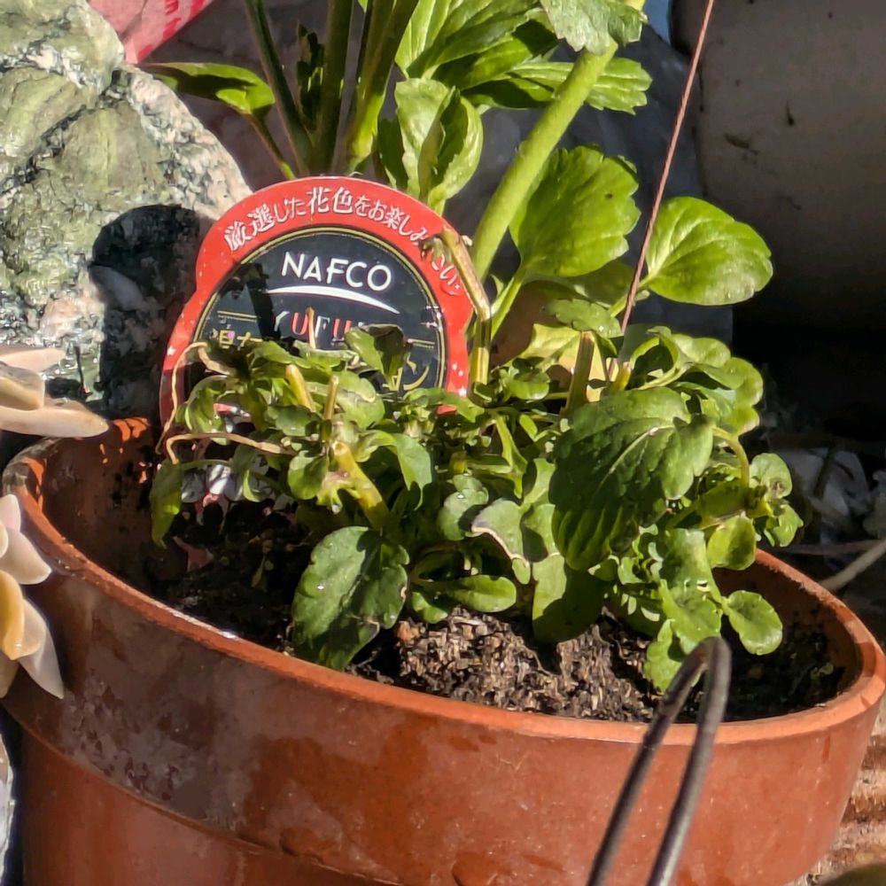 保護花の湯布院シリーズビオラも緑が美しいです。