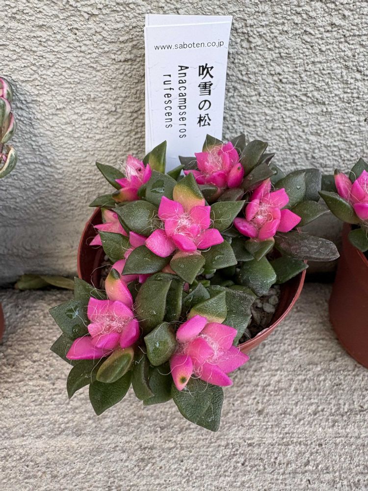 桃子の舞(ポーチュラカリア・桃子の舞 )と吹雪の松(アナカンプセロス 吹雪の松)