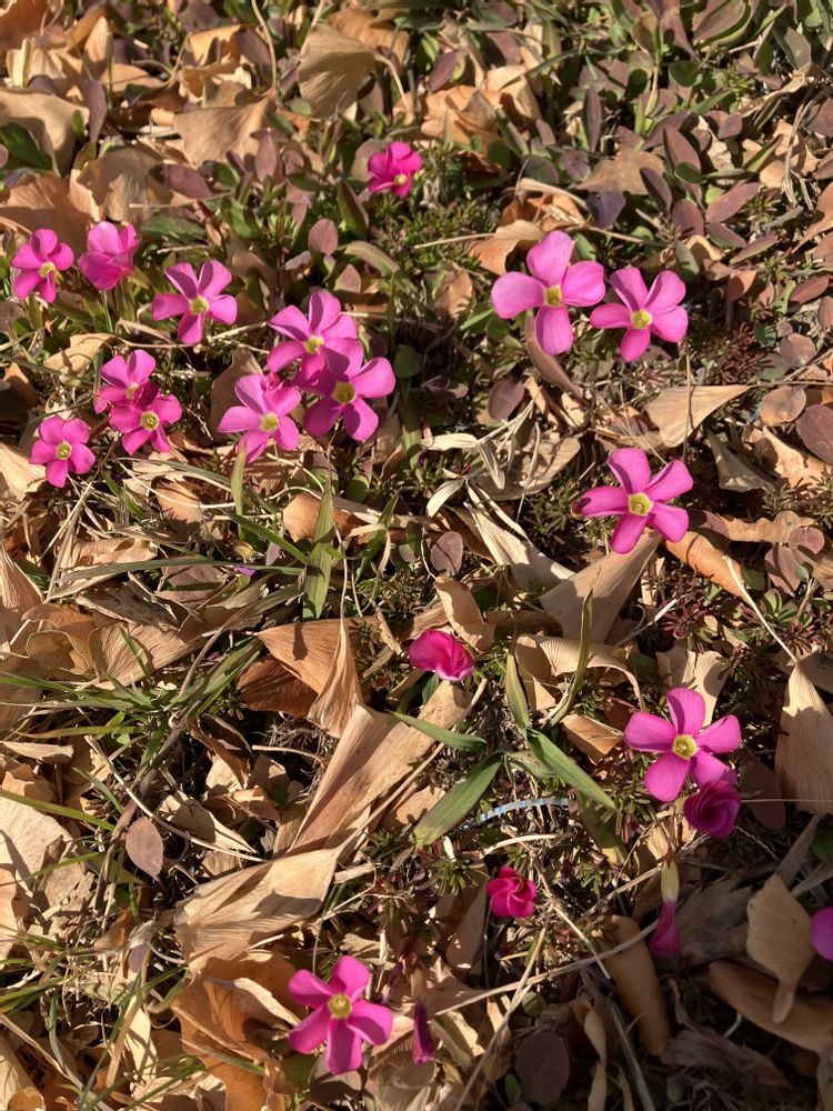 ご近所のグランド脇に枯れ葉の間から顔覗かせてたピンクの花 あたり見渡したけどここにしか咲いてなかったピンクが映える🩷