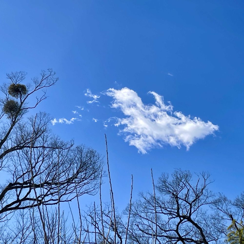 青空に緑が感じられる宿り木さんと雲が素敵🩵🌿☁