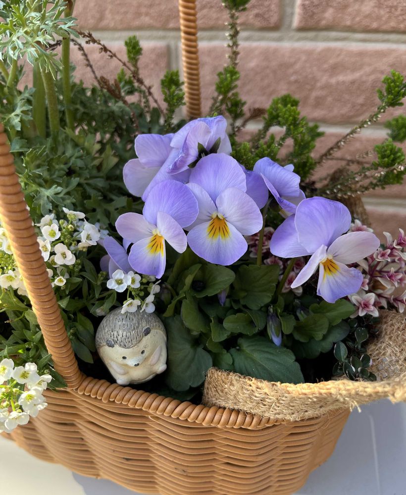 初めてカゴの寄せ植えに挑戦したの