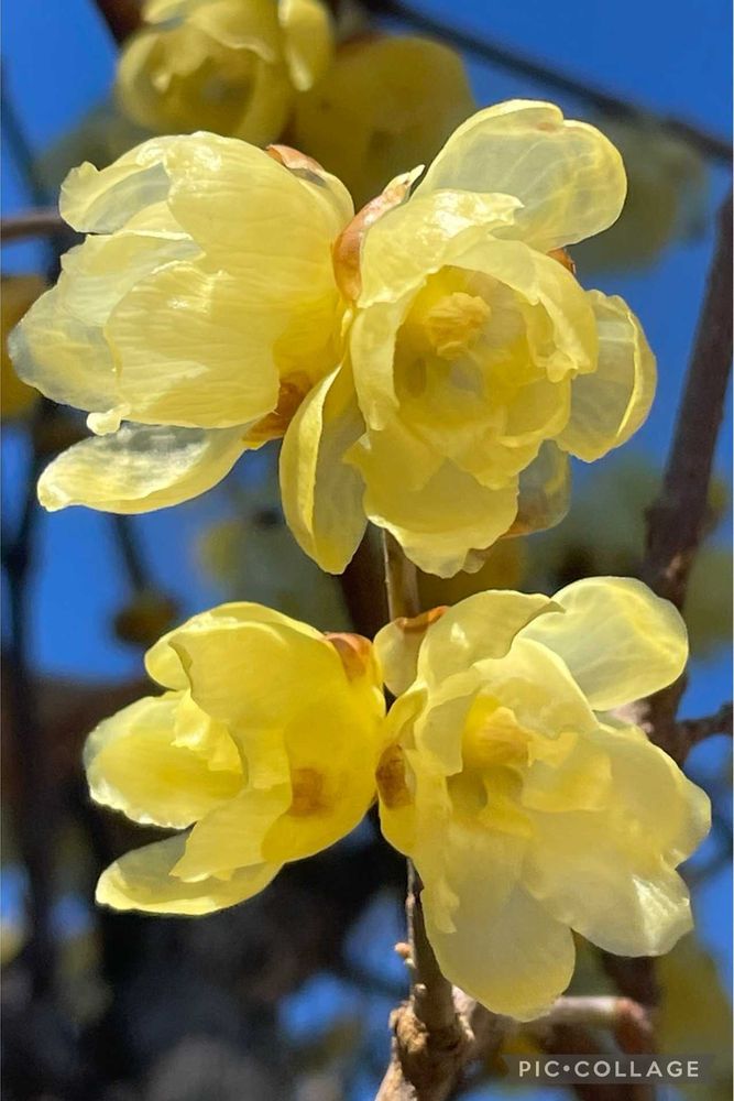 素心蝋梅です。葉っぱも落ちて沢山お花が咲いて、とっても良い香りがします💛