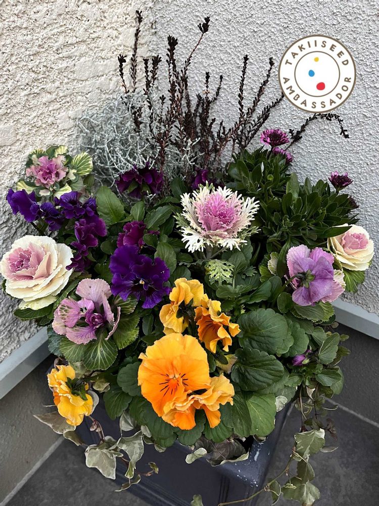 オレンジの花🧡再び咲きだし、紫の花💜も咲いているし、葉牡丹も綺麗だし、すごく華やかになっています✨
