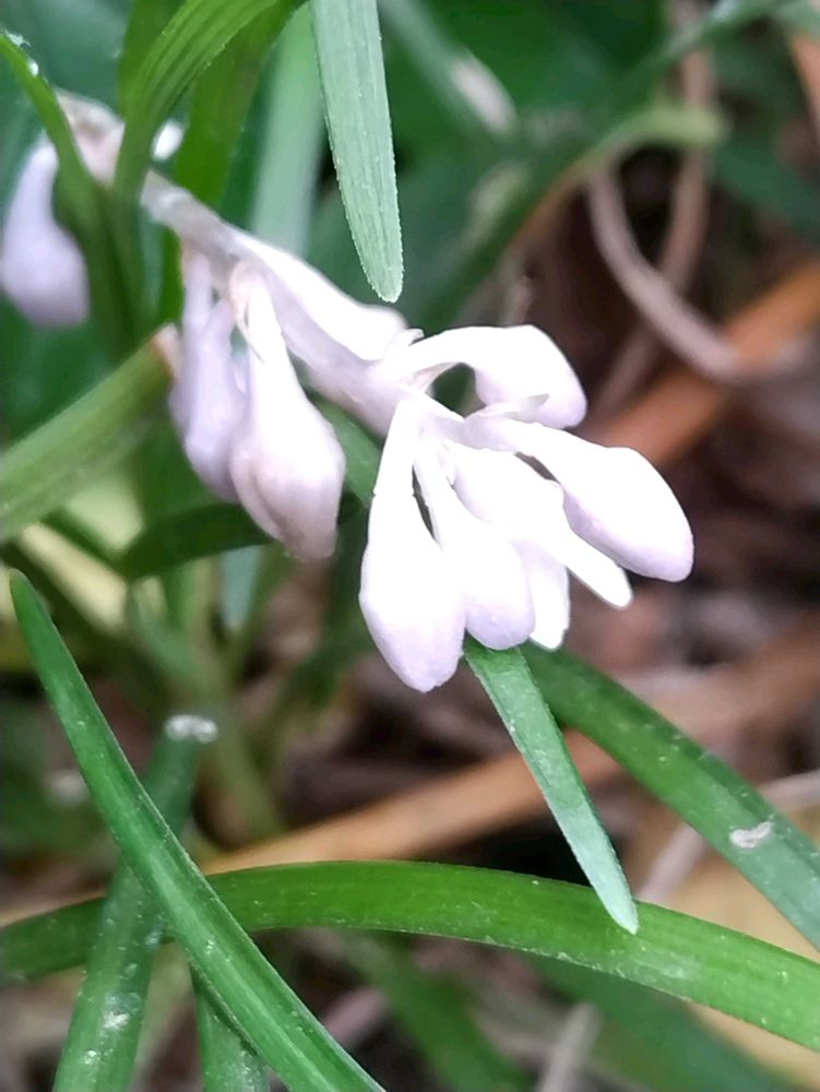 リュウノヒゲの真っ白な花から コバルトブルー🔵が