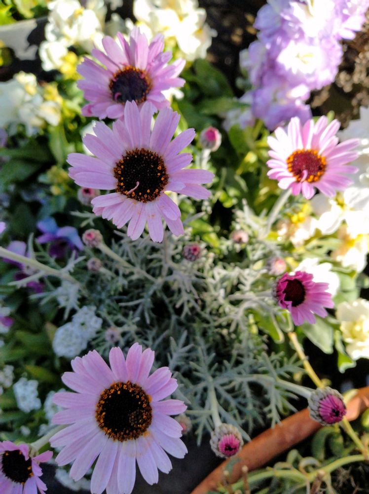 寄せ植えの中のローダンセマム✨が咲いてきています😀