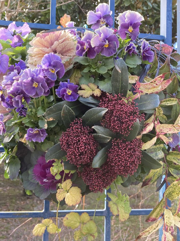 ハンギング(ミヤマシキミ、ビオラ、ハボタン)