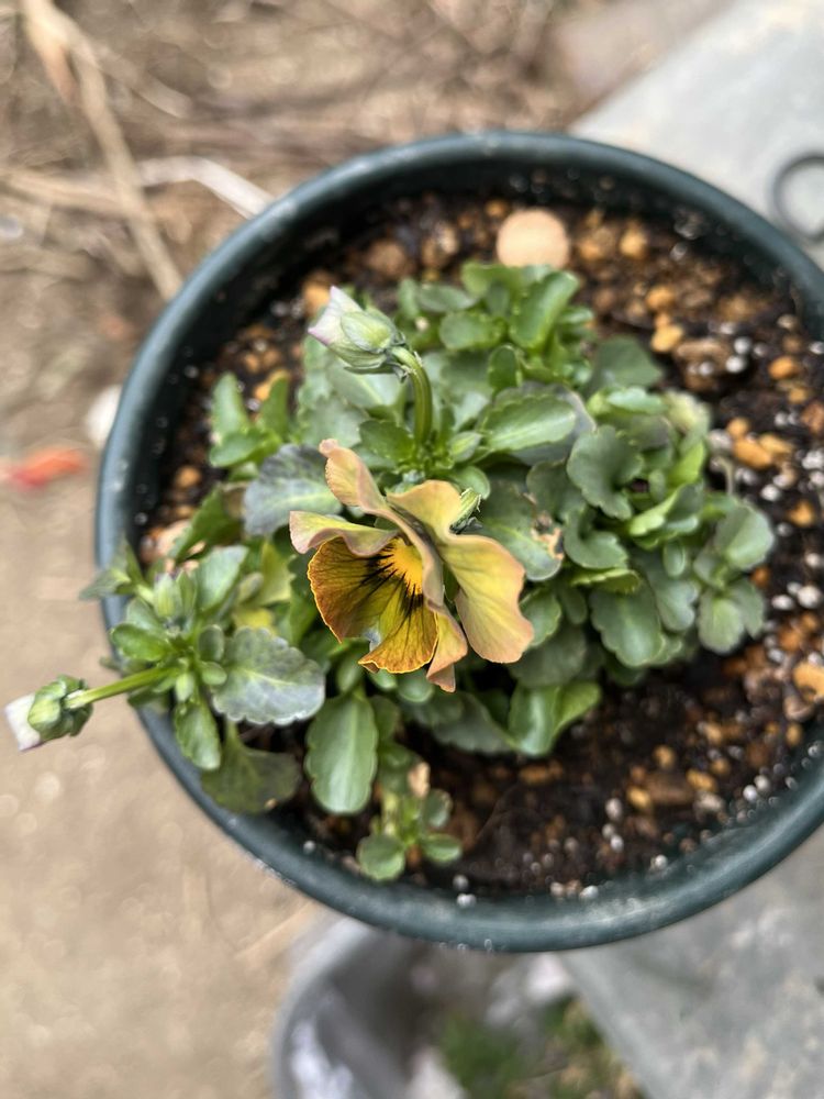 ①②12月中旬に切り戻して植え付けたお花、開花し始めました😊🌸花が終わったお値下げ株で何色か分からなかったのですが、直径3㎝ほど、ニュアンスカラーの良いお色が出ました♡