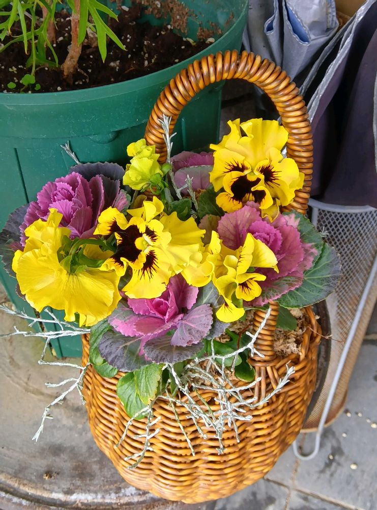 元気になる寄せ植えだわ💛💜💚🤍