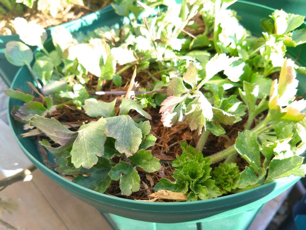 不織布は日中なるべく上げてましたが、ぎっちり並べているので、葉っぱが茂ってきて風通しが悪くなっていたのかも😖傷んだ葉っぱも防寒に、と思ってましたが、思いきって古い大きな下葉をとりました🌿
