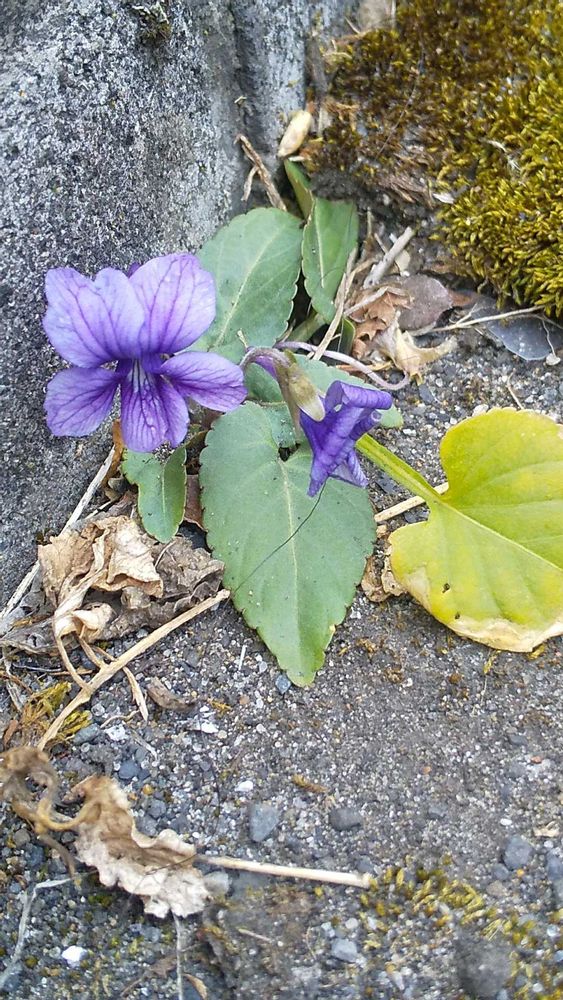 暮れにも投稿した名無しのすみれちゃんがまたその道端に咲いていました。
