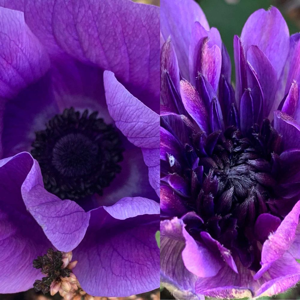 同じ色のアネモネの一重と八重を御迎えしました〜!何か深い色合いに惹かれます!♪♪♪(╹◡╹)♡