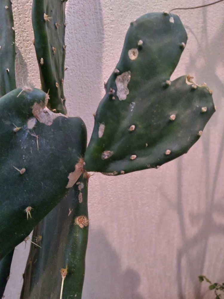 🌵室内に入れたウチワサボテン、ハート型になっていると思ったら、穴が空いてたー。