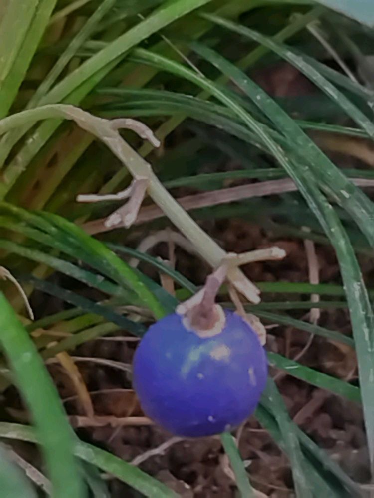 家のもっとも暗い日影のリュウノヒゲ、青い実💙