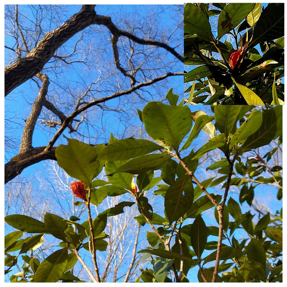数少ないクチナシの赤黄色の実🔴が真っ青な青空に映えていました😃✨