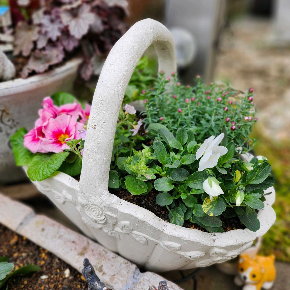 珍しく詰め気味の寄せ植えも作ってみた🧺