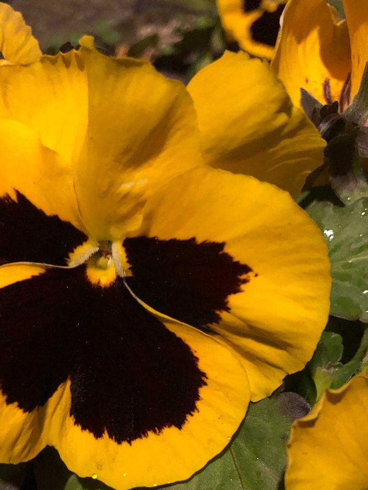 マンション下で、ビオラ、パンジーちゃん元気いっぱい。💛💜´ ▽ ` )ノ。