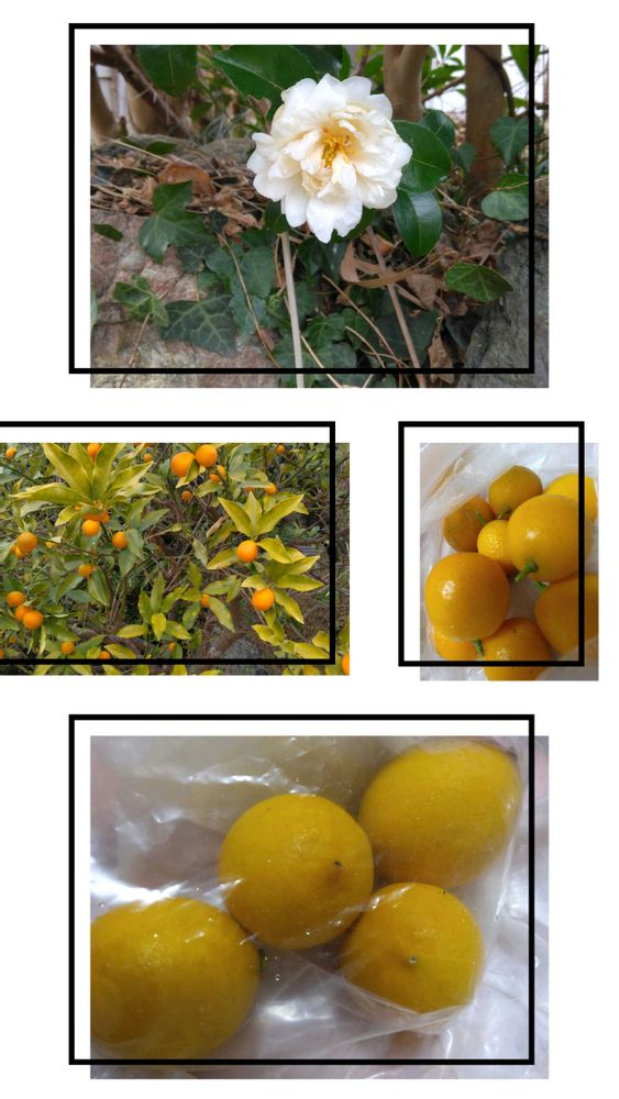 と収穫した実10個と貰ったレモン🍋4個 🍋は鉢植えでご主人が育ている