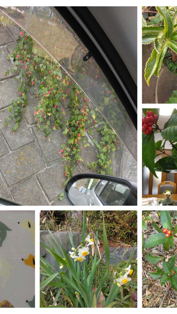 ↖️のは私の車の中から近所さんちの石崖に伸びていたアプチロン