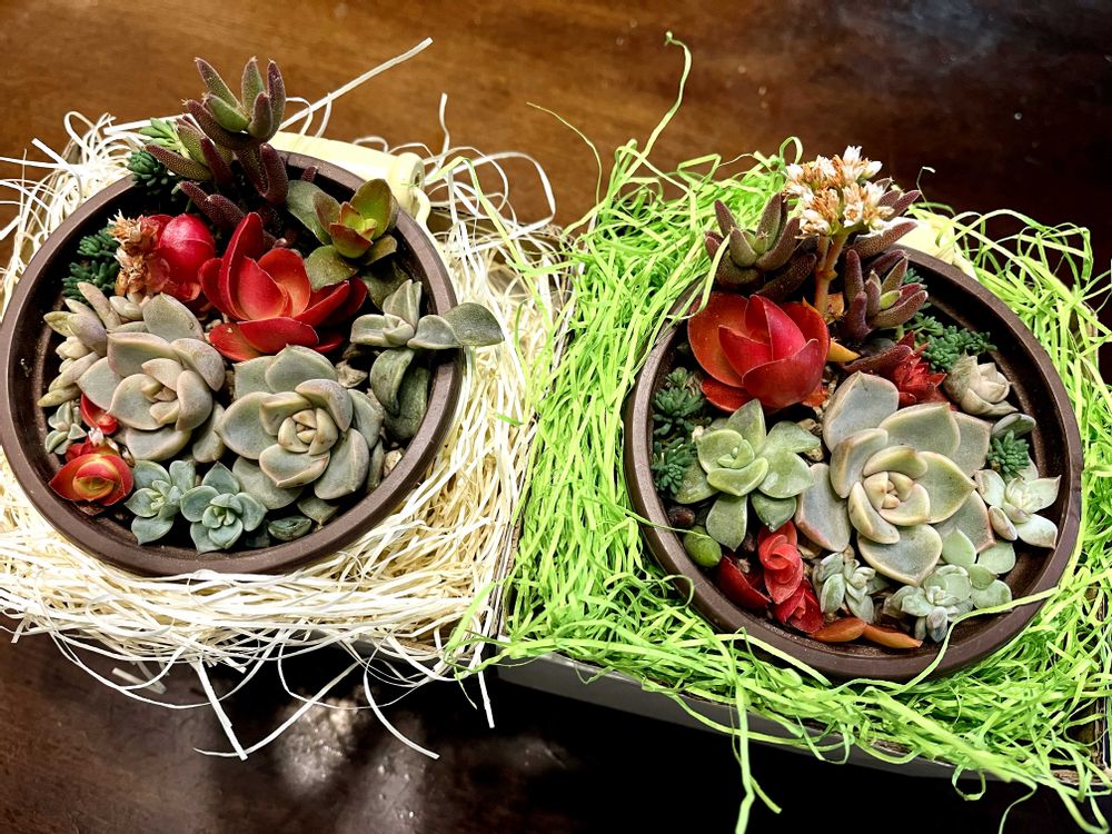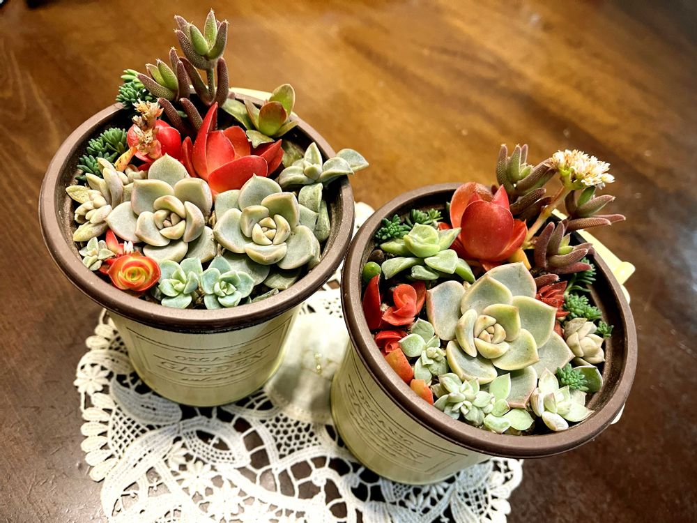 友人2人へのプレゼント🎁のために、久々に小さな多肉寄植えしてみました😊