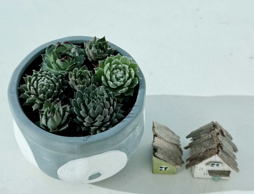 久しぶりにDAISOさんセンペルビウムを5ポット分を寄せ植えに…