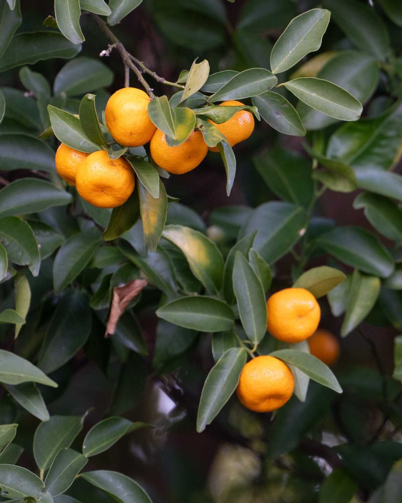 樹高3mほど。小ぶりのミカンのよう。おいしそうな実ですが、食べないほうがよさそう。酸っぱいそうです。実が長い間枝に残るので繁栄を象徴する縁起物とのこと。2025.01.25.