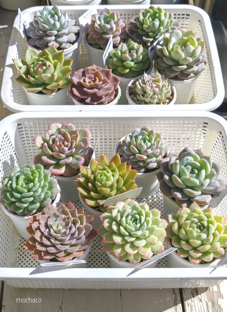 形の崩れた子とか色付いて欲しい子をカゴに入れて昼間は外に出し夜に多肉小屋にしまうを先週やってました