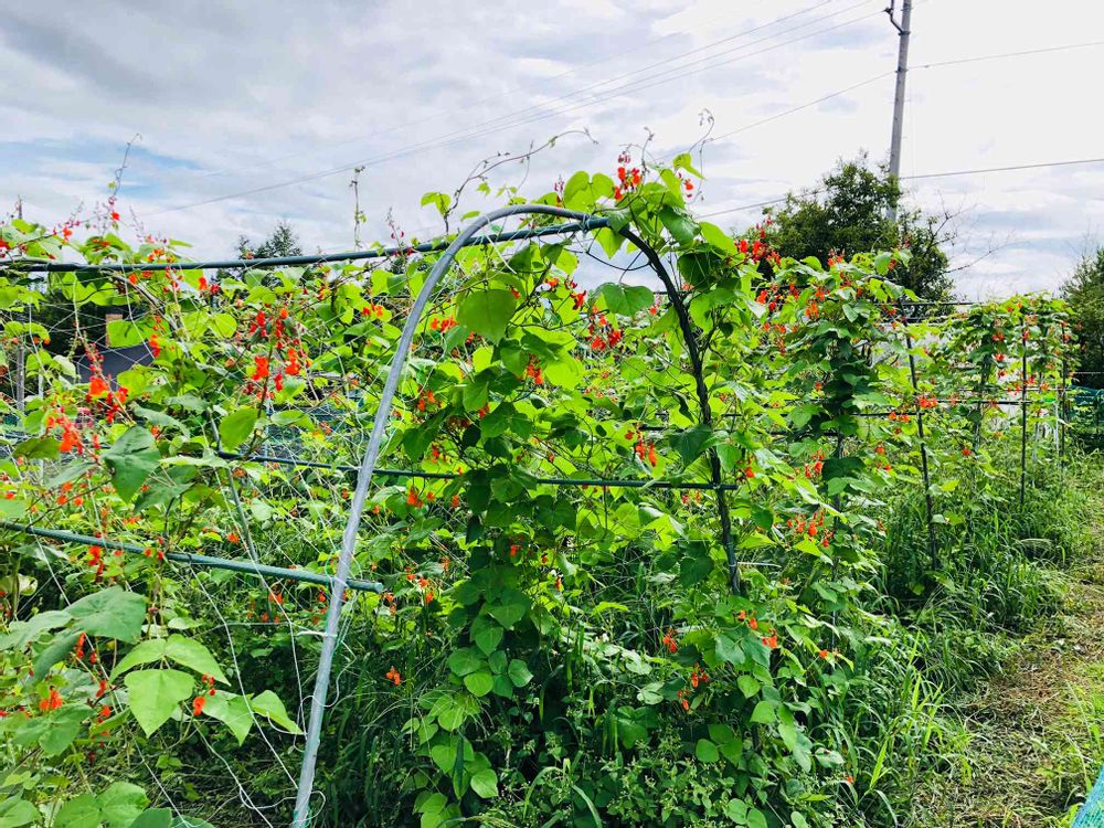 真っ赤な豆の花は、この辺り独特でしょうか❔