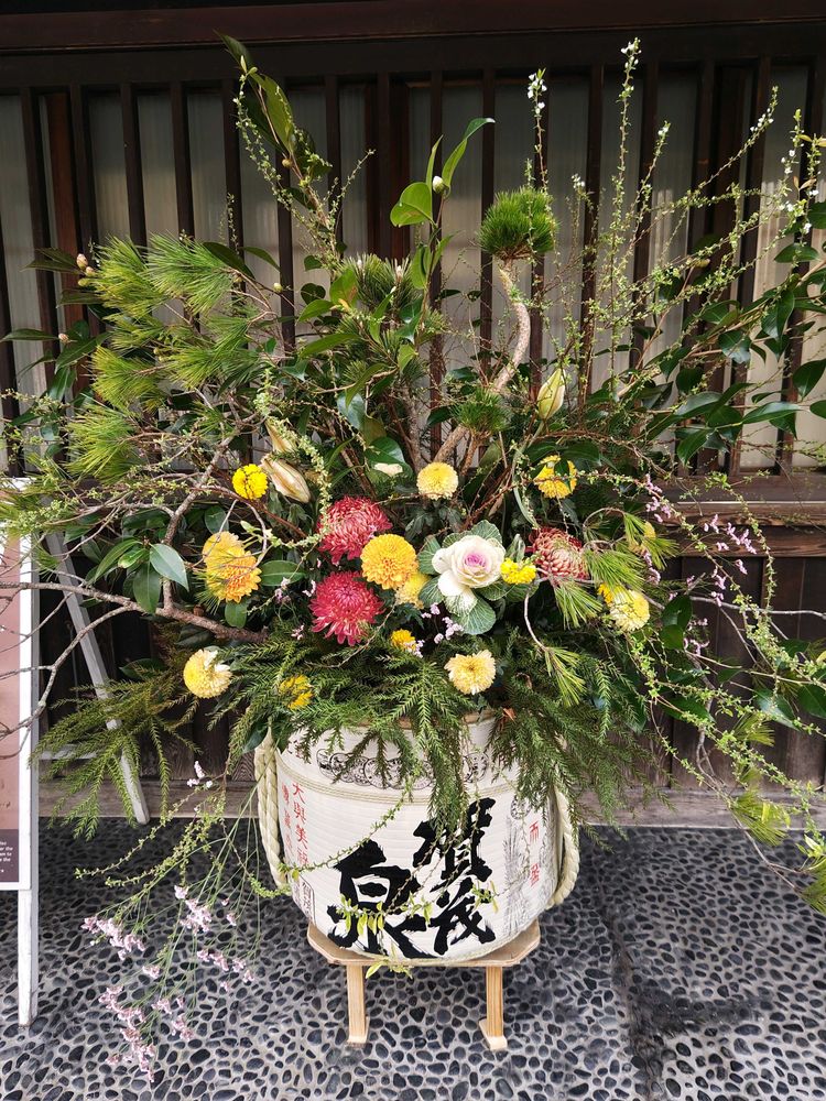 酒樽には豪華なお花がとてもお似合いなんですネ👏♥️🥰🎶