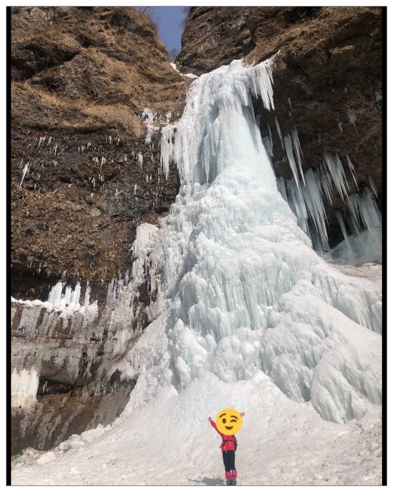 滝壺までは結構な危険地帯ですね。あそこだけは、滑落するとかなりヤバいので、アイゼンとピッケルはあった方がいいと思う😅