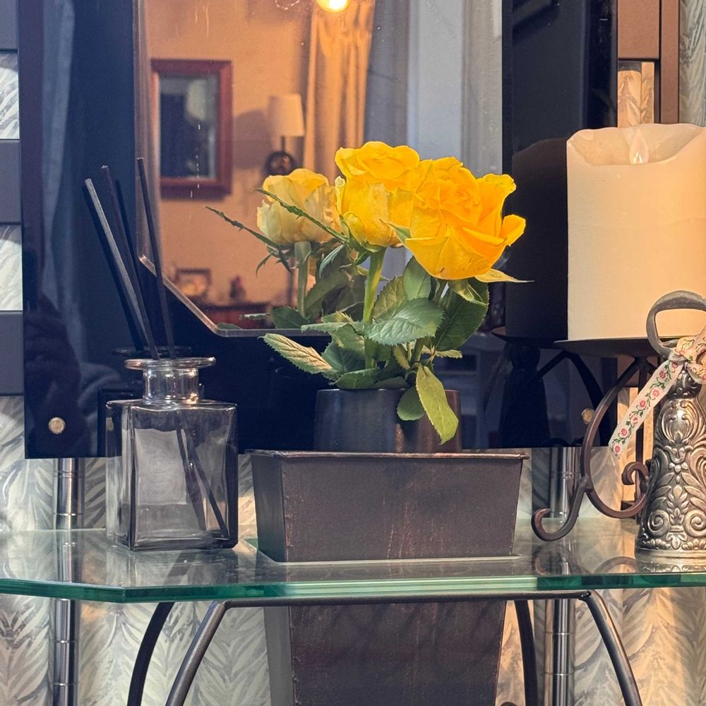 インテリア仏壇「鏡壇ミラリエ」「鏡壇ミロワ」に今日(1/28)の誕生花の「黄色のバラ(薔薇)」 を飾ってみました。