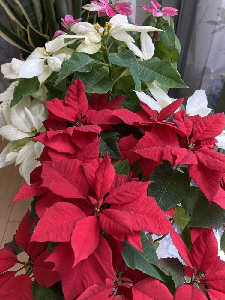 園芸店の店頭のように鮮やか色で生き生きとしたポインセチアです♥️ステキ+.゚(´▽`人)゚+.゚
