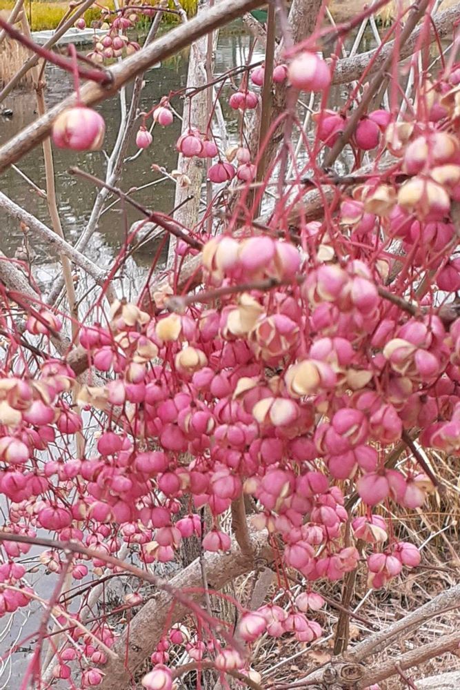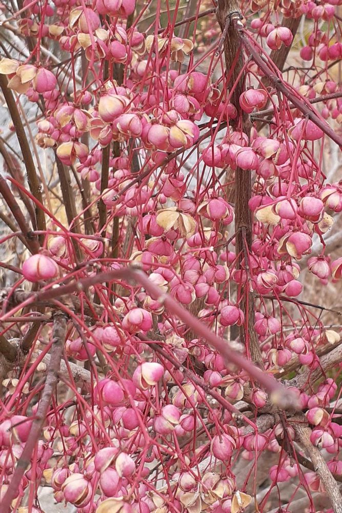 マユミまだこんなに鈴なりですね🩷こちらの秋の様子と同じでビックリです🫢