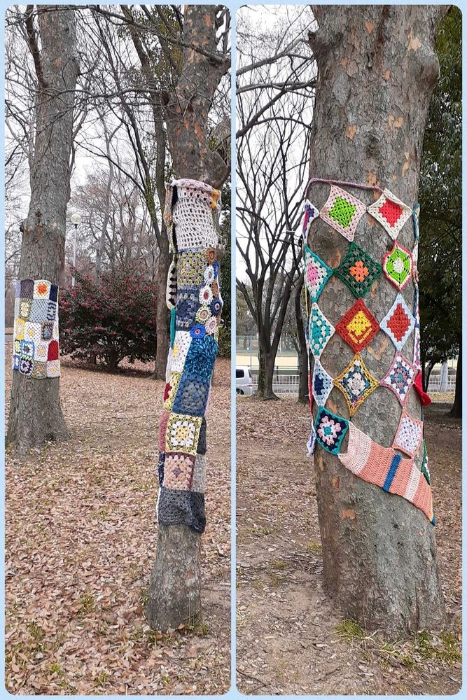 ボランティアさん達が一生懸命編んで大きな木に…🧶