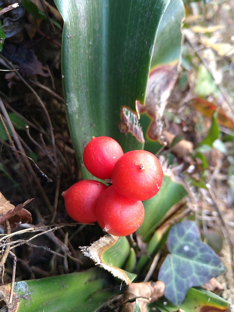 12/10に投稿したオモトはどうしたかなと今日通勤帰りに見たら、まだ可愛い実が残っていました✨❤️
