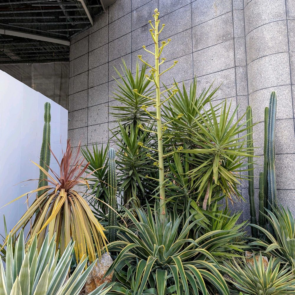 心斎橋の長堀通のドライガーデンにアガベベネズエラとおぼしきやつが花咲かせそう。