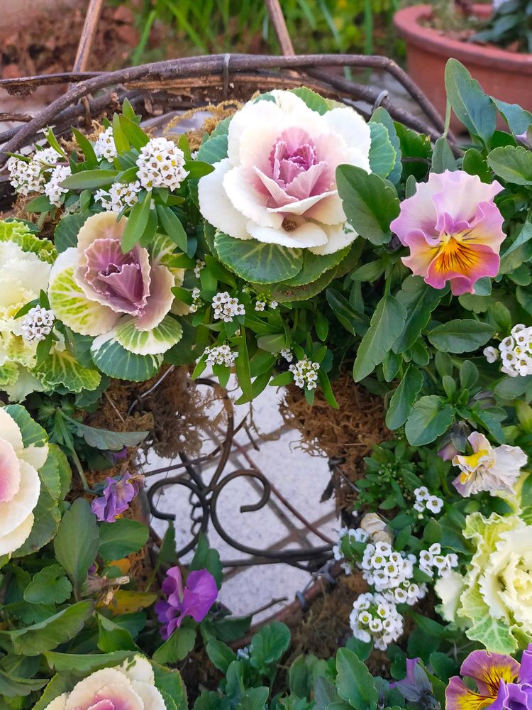 ビオラと葉牡丹のリース綺麗に咲いていますね🌿🌸