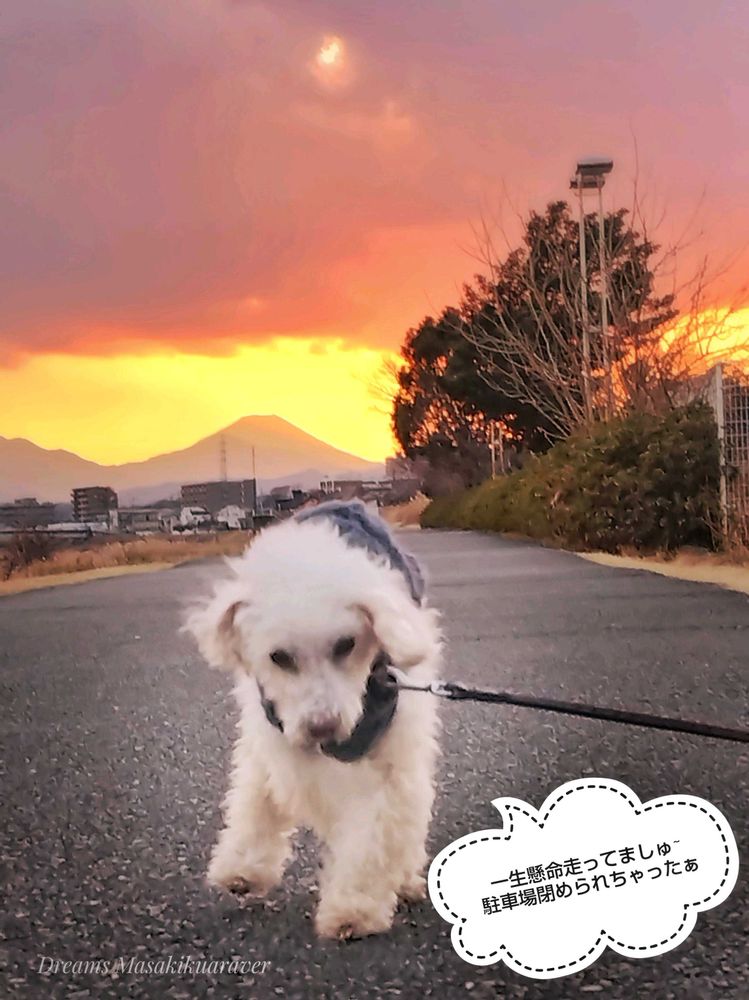 Masakikuaraverさんの遠くの富士山,夕焼け,お散歩わんこの投稿画像