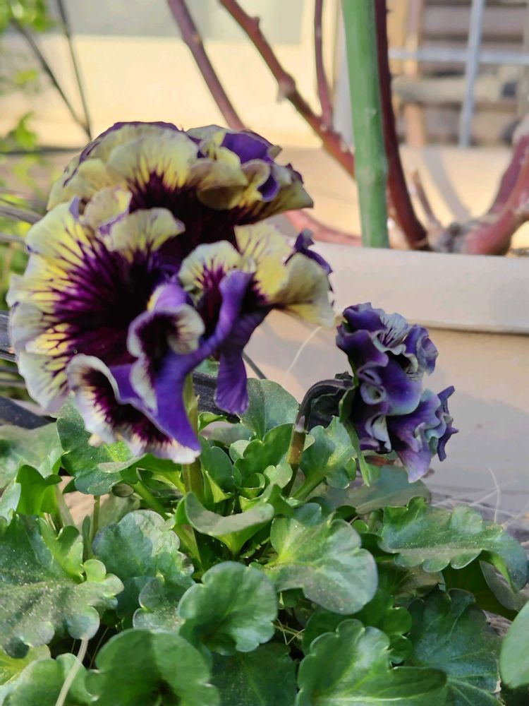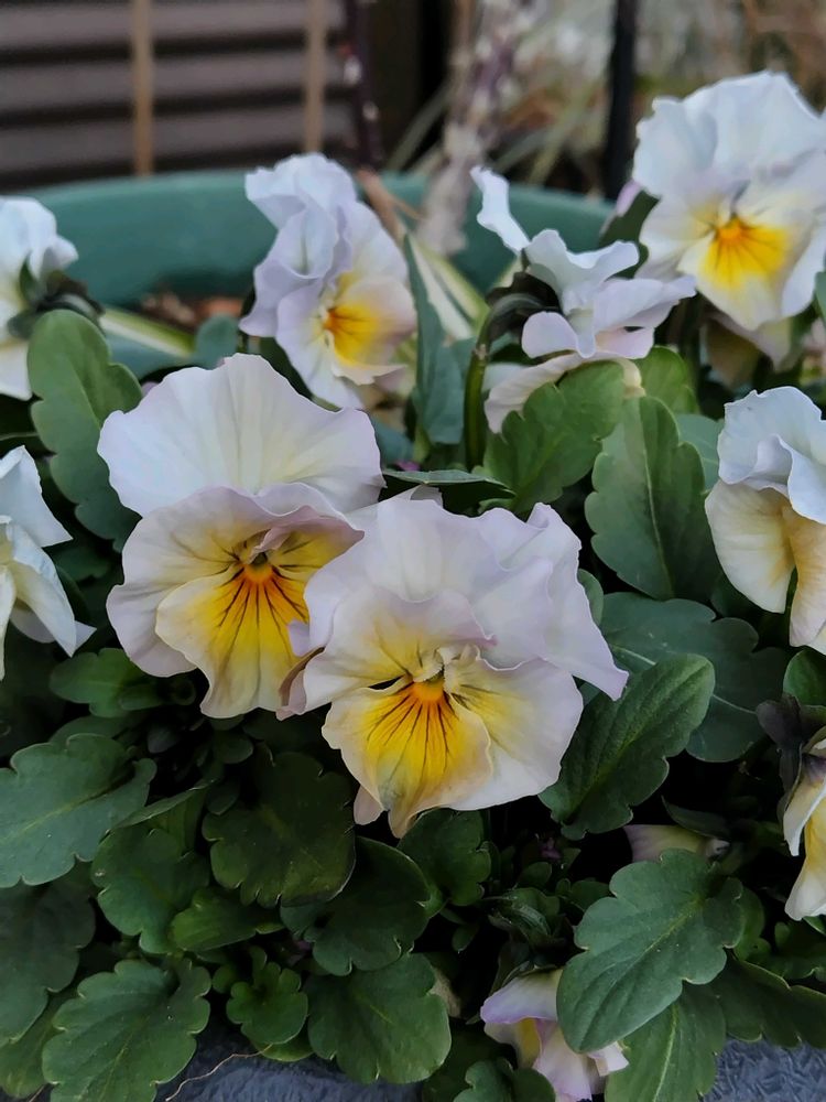 お花たちはそんなの関係ね〜って咲いてるパンジー、ヴィオラ達から