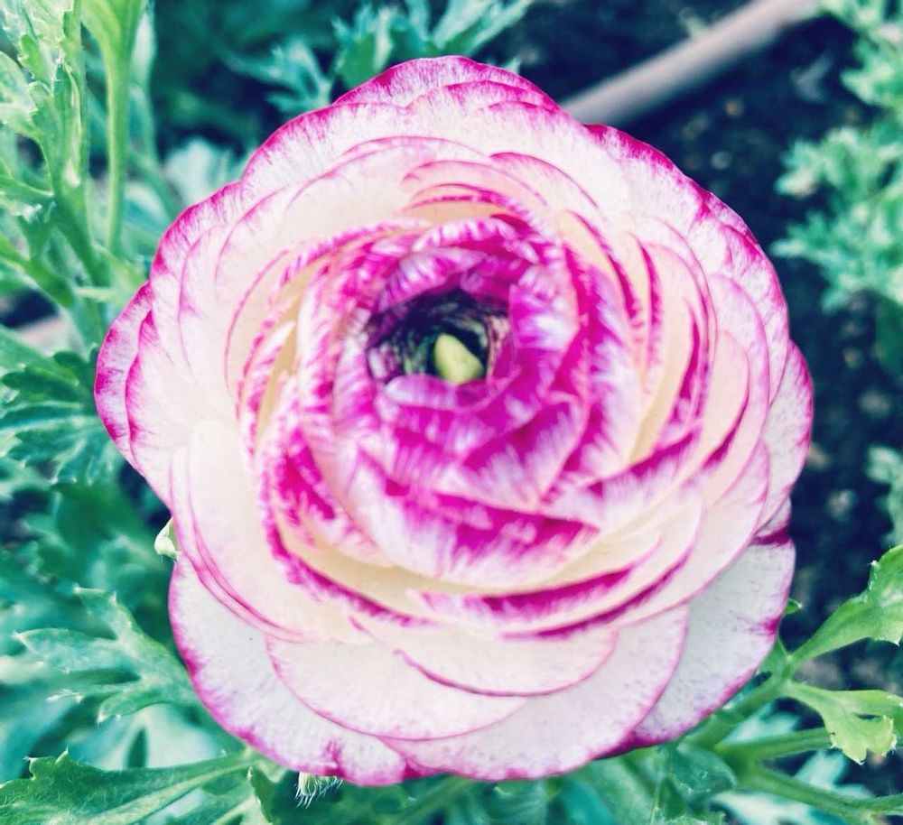 絞り染めのような風合いのリッチな花弁を湛える、「ラナンキュラス・スプリンクルバイオレット・バイカラー」で、おはようございます✨️🌸☺️🌸✨️