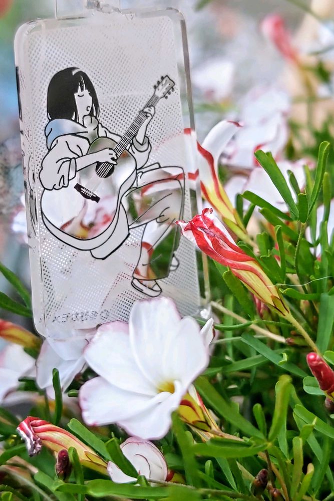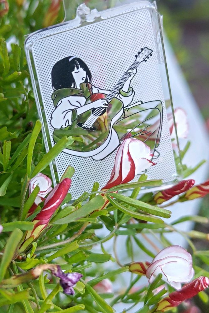 おはようございます😊ギターのすみれちゃん、前後に花に囲まれて、気持ちよさそうです😄白いギターに〜♪なんて、歌っているみたいです😄