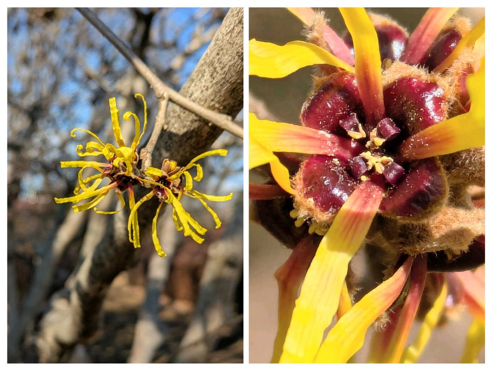 お出かけついでにチョット公園へ寄り道。 「シナマンサク」が満開でした🎵 日本のマンサクよりも先に咲くそうです。 細い花弁が面白いですね!