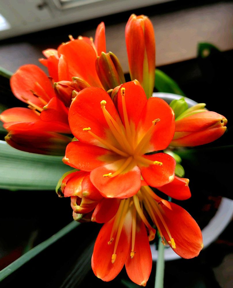 もう⁉️クンシランさんが咲き始めたのですかー⁉️ 早いですねー❤️🧡❤️🧡