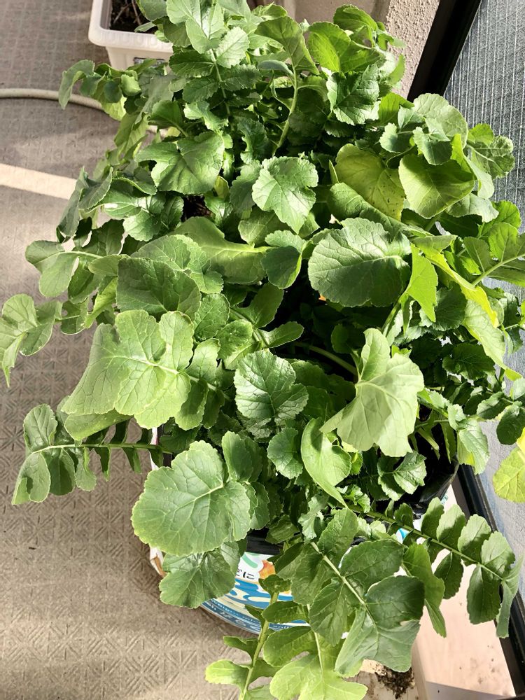 無農薬栽培なので柔らかくてグリーンも綺麗です🤩うちはマンションで上の階の方なので虫にも葉を食べられていなくて立派な大根の葉がわさわさになりました🍀