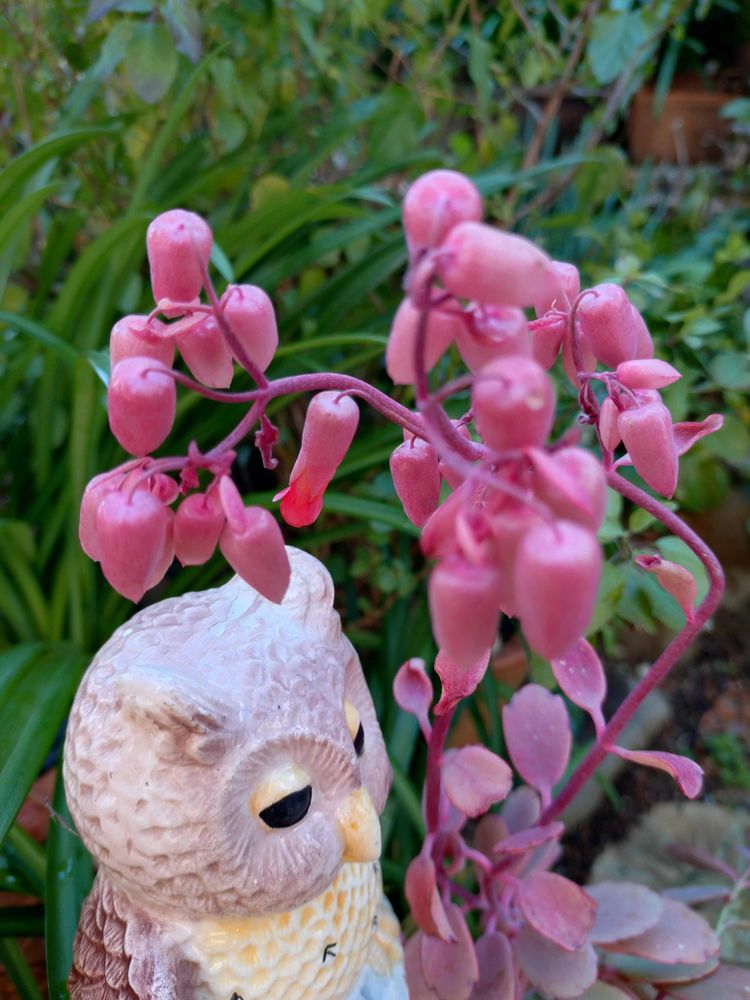 フクロウ君と花と葉が同じ桜色ですね🩷