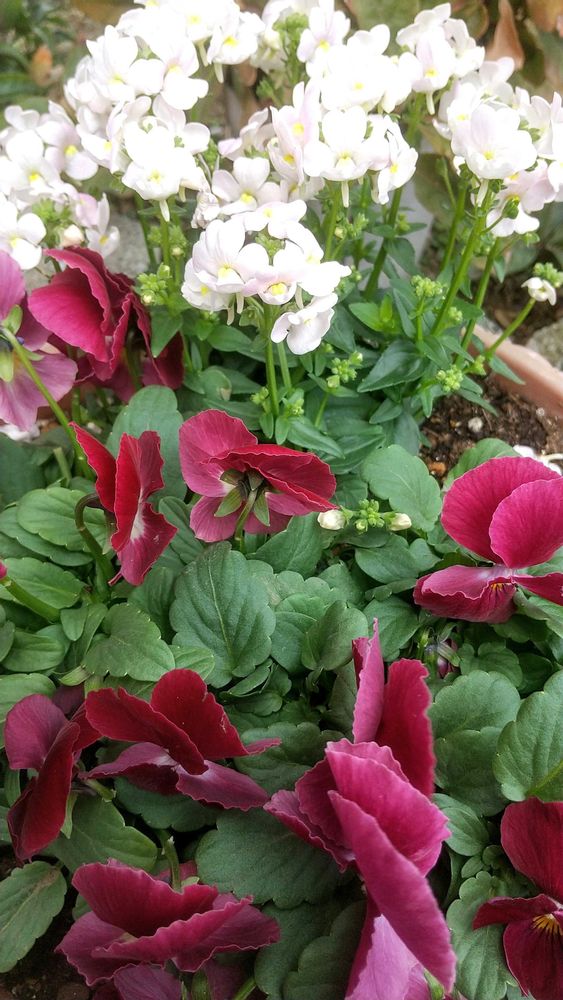 玄関前用に、置くために、赤いビオラとネメシアを植えました。🌼🌸