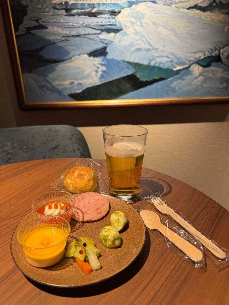 ⑤ラウンジのおつまみと流氷🧊の絵画🖼️